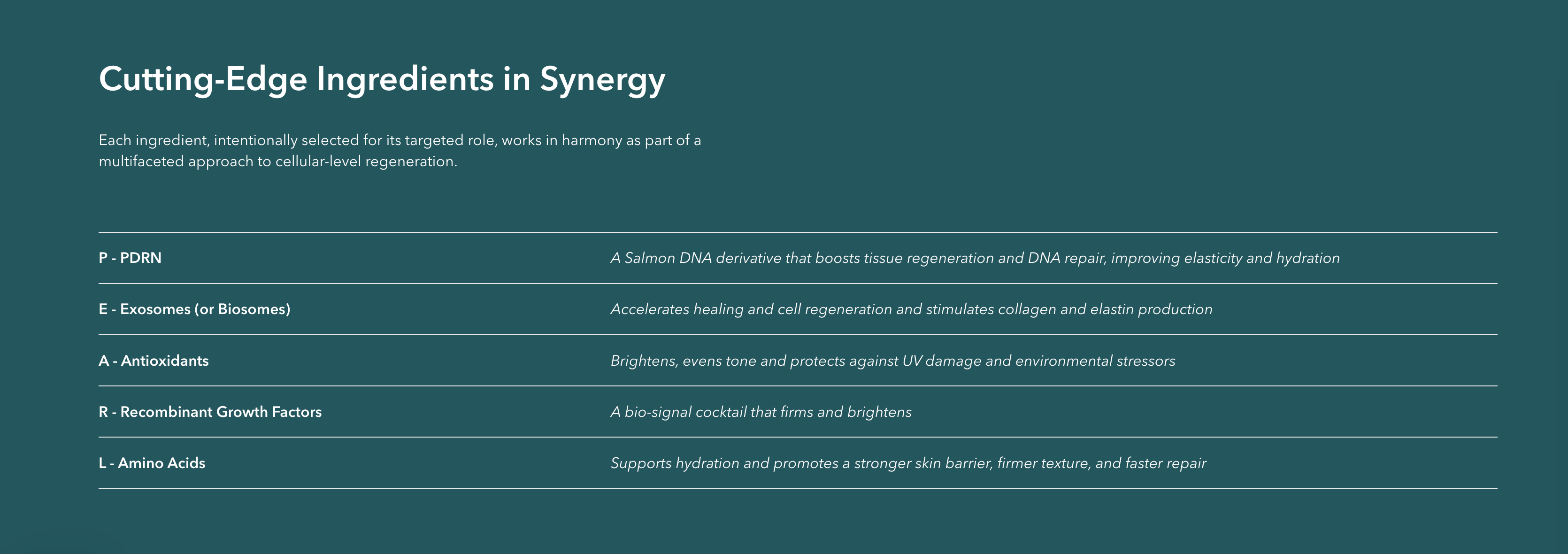 It is the only product on the market that combines both Regenerative actives and PDRN into one cohesive system. This dual-technology approach works synergistically to significantly boost skin repair and collagen production.
